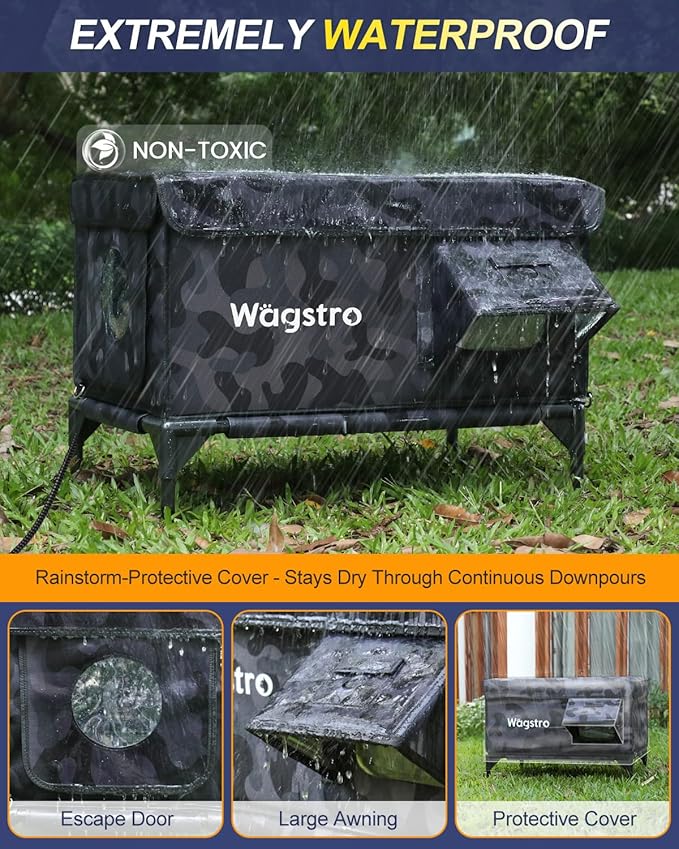 - Escape Door and Camera Support: This heated outdoor cat house features a built-in escape door for added safety and supports our dedicated cameras (sold separately) both inside and outside the shelter. Monitor your cat and surroundings anytime with peace of mind.