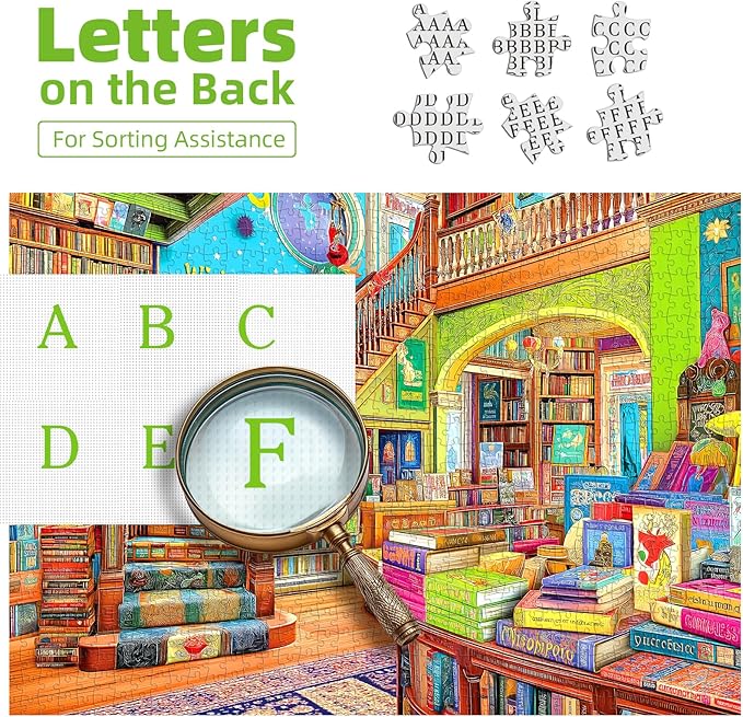 - 🧩 Carefully Crafted: Enjoy smooth assembly with this 1000 piece puzzle for adults. High-precision cutting ensures pieces fit snugly, solving loose connections in some adult puzzles 1000 pieces. Made with clean materials, it’s safe for hours of fun with kids or family. HD printing makes every book spine and fairy light pop, making this 1000 piece jigsaw puzzle a joy to build. Included is a clear guide to navigate this challenging puzzle 1000 pieces—great for all skill levels.