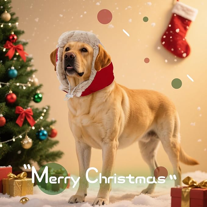 - DOGS STRESS ANXIETY RELIEF HOOD - Winter style, the dog warm hat used for wind and cold protection; In addition, noise protection. Dog hat christmas also can be used for dog anxiety, or fear of strangers and new environments, such as pet hospitals, dog grooming, moving to new homes, firework, noise, travel, seperation, etc.; also suitable for bad weather, such as thunder, lightning, hurricanes, snowstorms, etc.