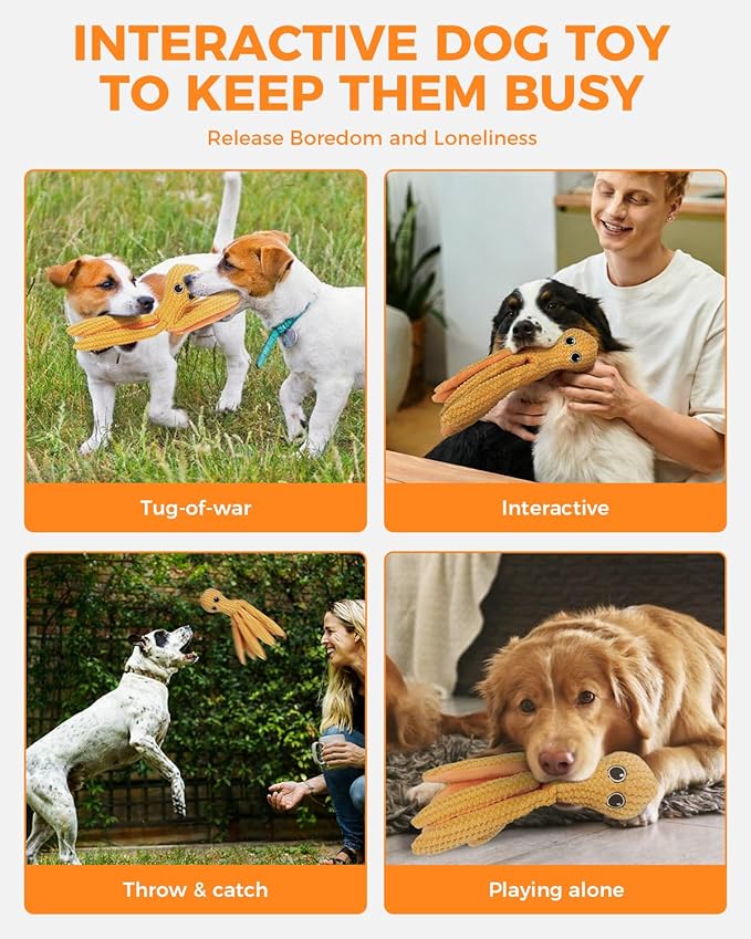 - REDUCE ANXIETY & STRENGTHEN BONDS: Perfect for interactive fun, the eight legs make it ideal as a dog tug of war toy and a satisfying shaking and chewing toy. It redirects destructive chewing, eases separation anxiety, and builds stronger bonds between you during active play