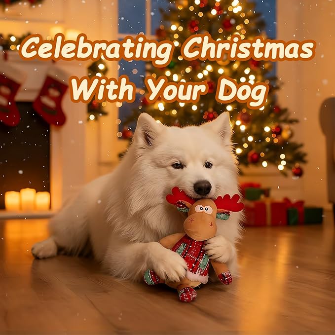 - 【Christmas Dog Toy 】This Christmas reindeer toy features Christmas themed color decorations on its feet, ears, body, and limbs, making it a perfect gift for your beloved pet during Christmas. the appearance of the cute elk squeaky dog toy is very popular with dogs. It is the best choice for small to large dogs, not recommended for aggressive chewers