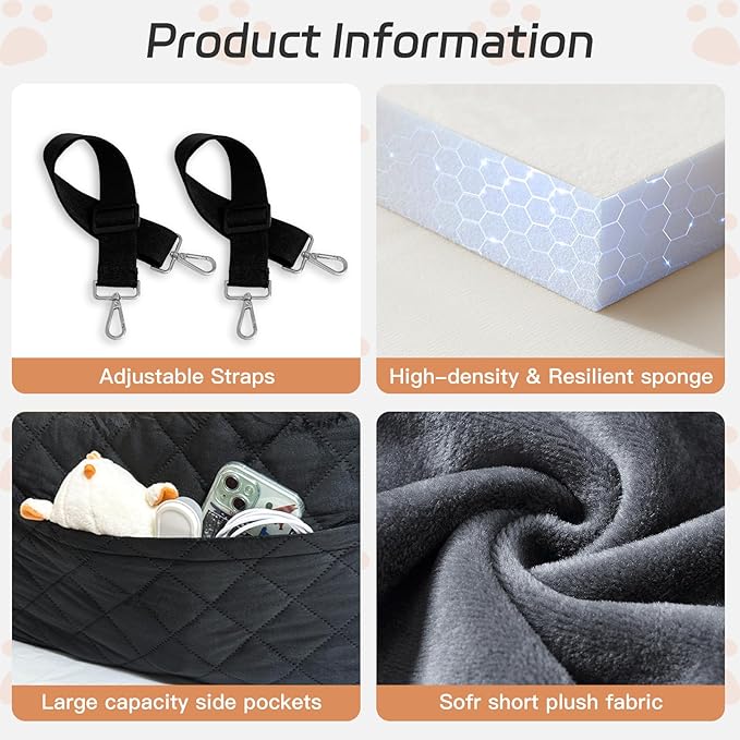- Multi-Functional Use: Beyond car rides, this versatile dog bed for car can also be used as a comfortable pet bed at home, in tents, or outdoors. It doubles as a car seat protector, shielding your car from scratches, dirt, and fur, while also offering convenient storage pockets for toys and treats