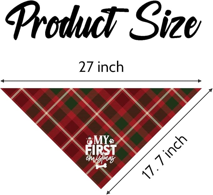 Dog Bandanas, Christmas Dog Bandanas, Red Plaid Dogs Bandana, My First Christmas Pet Triangle Scarf, Holiday Bandana for Small Medium Dogs