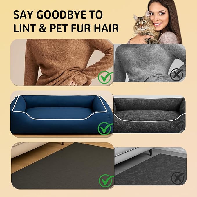 - Upgraded Pet Hair Removal Glove: Swipe away dog & cat fur from clothes, couches, bedding, and more—fast, mess-free, and no sweat! Ergonomic design with increased coverage(9.4" x 7.08") for easier, more efficient pet hair removal. Deep clean without the hassle, and keep your space fur-free easily
