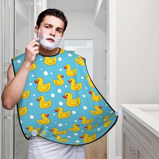 Beard Hair Catcher for Men, Waterproof Shaving Bib Apron Non-Stick, Trimming Tool for Dad Husband, Yellow Rubber Duck Print Shave Bib