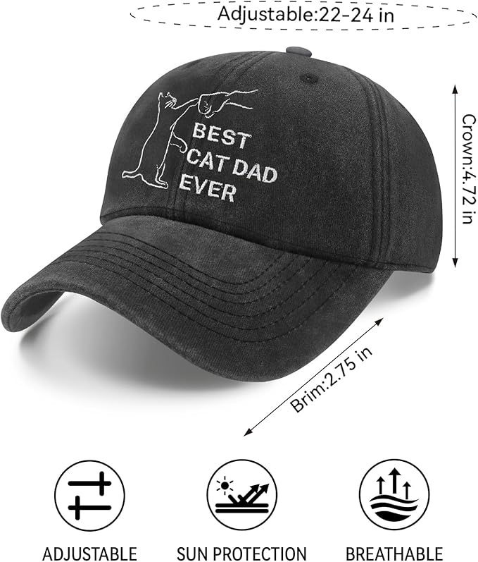 - Unique Design: "BEST CAT DAD EVER" and a kitten are embroidered on the front, expressing love and pride for your cat