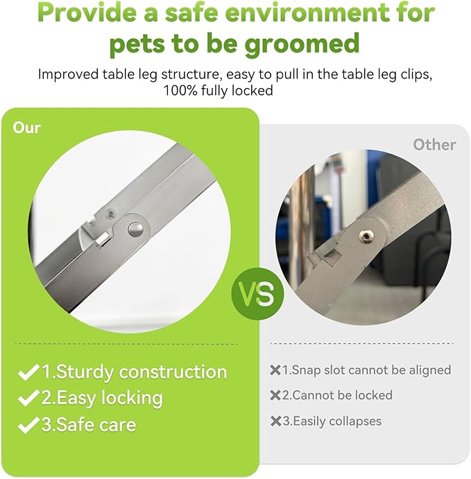 - 【Professional Dog Grooming Table】Sturdy metal bracings and a tightly-connected H-frame help keep the table stable and long-lasting