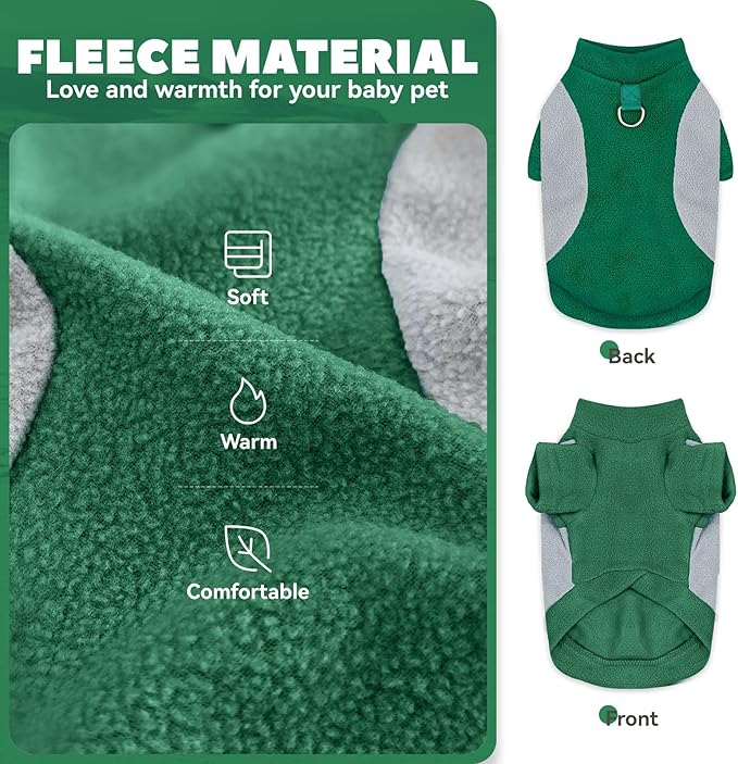 Small Dog Sweater with Leash Ring Soft Warm Fleece Fall Winter Dog Clothes Cute Cat Apparel Puppy Sweaters Classic Pullover Doggy Sweatshirts Chihuahua Costumes Cat Outfits(Green,L)