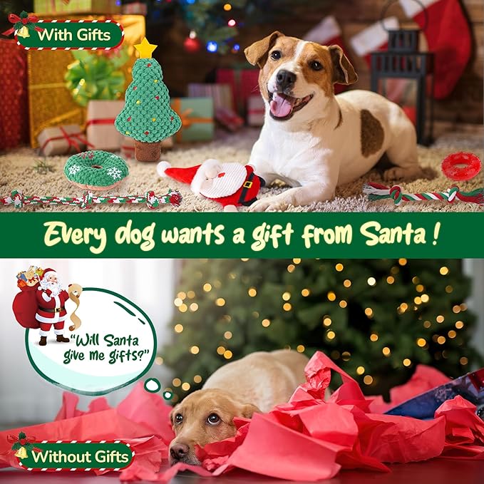 - Fun Filled With Love: Share tug-of-war with rope toys, toss the squeaky ball for a cheerful fetch, cuddle with the plush toys, enjoy playful squeaks from no-stuffing Santa toy for hours of holiday fun