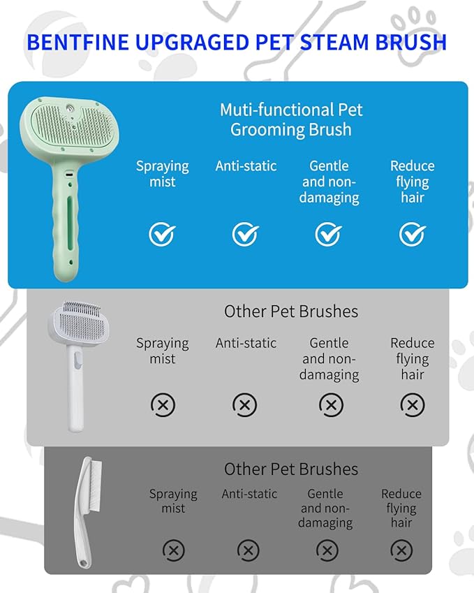 - 【Durable and high-quality】: Cat steam brush Each comb tooth is designed with a round massage ring, which can better protect your pet's skin. A single charge can last up to half a month, comes with a small water bottle to add water or other liquids to the brush's water tank, and comes with a corresponding charger.
