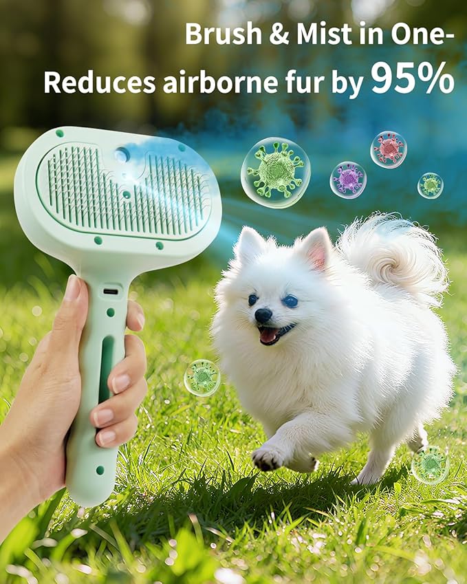 - 【Pet-Friendly Dog Brush】The humanized design bristles of pet spray hair removal comb, enveloped in a protective gel, ensures that your pet's skin remains unharmed. Effectively removing dead skin and loose fur, it improves hair health.