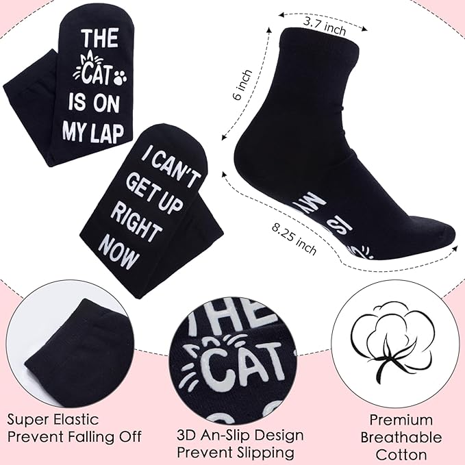 - Unique Design: An adorable embroidered cat is specially designed on this knitted winter hat, and the warmth scoks bottom reveals a playful secret message in non-slip ink: "I CAN'T GET UP RIGHT NOW. THE CAT IS ON MY LAP".