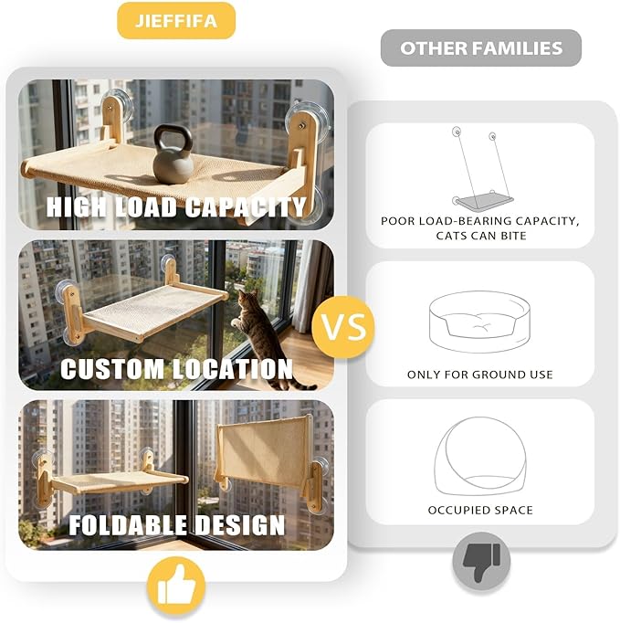 - Ultra-Secure Suction Cups, Tested & Trusted: Features upgraded suction cups that underwent a rigorous providing a safe and stable lounging space for your medium and small cats