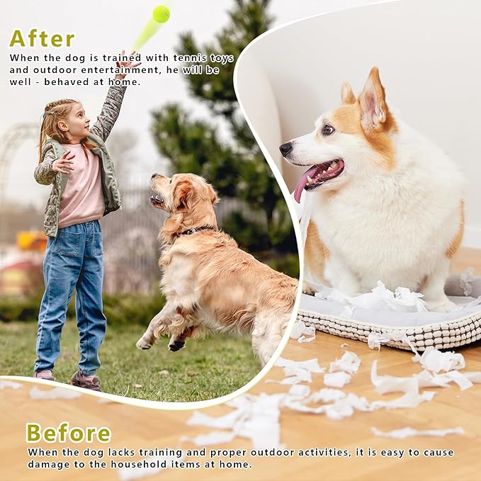 - 【DOG SQUEAKY BALLS】Our tennis balls have a built-in squeaker. When your pet bites or squeezes a ball, it emits a cute sound that sparks their interest. These squeaky tennis balls not only keep your pet from feeling bored but also strengthen the bond between you and your furry friend.