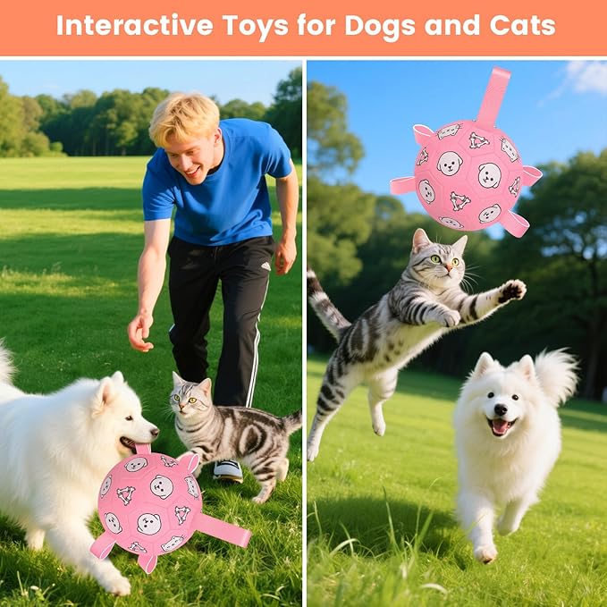 - 🐾Interactive Fun for Dogs & Families: Features 4 ultra-fiber grab tabs and 1 strap for easy biting, tugging, and chasing. Adorned with cute dog, cat, and bone prints, plus eye-catching colors that dogs and kids both love. Keeps your pup active, happy, and less anxious—perfect for indoor or outdoor play with the whole family.