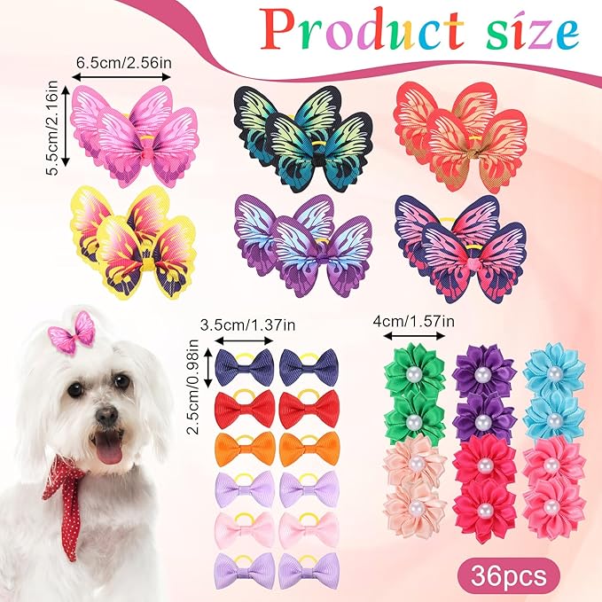 - 【Ideal Gift】With 36 pieces in each set, these dog hair ties bows offer ample quantity for daily use and sharing with other pet owners. The assortment of styles and colors provides variety, making it a thoughtful present for friends and family who have pets.