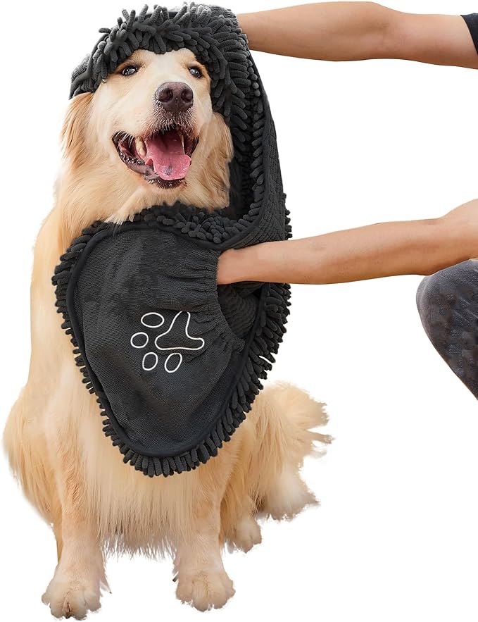 - Super Absorbent & Quick Drying; Crafted with ultra-soft microfiber, this dog towel absorbs moisture 6x faster than cotton. Ideal for after dog washing, swimming, or rainy walks.