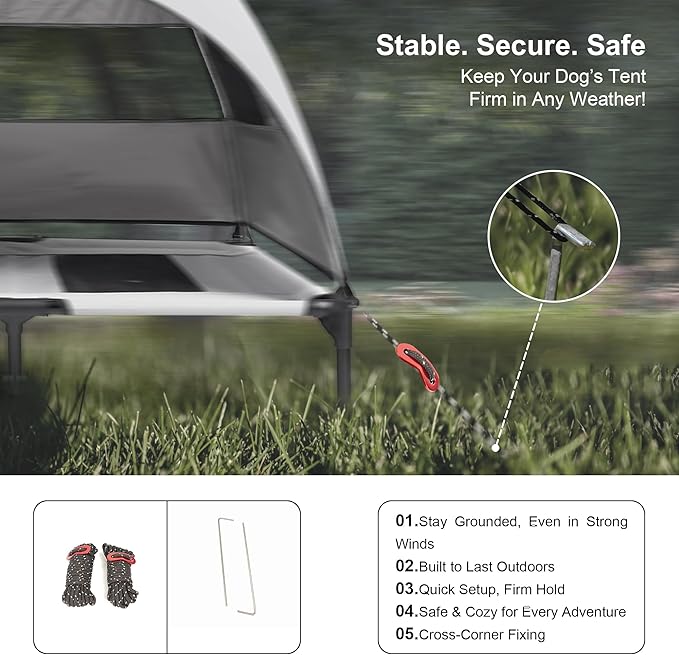 - Versatile Outdoor Shelter – Functions as a dog tent, portable pet house, or shaded lounger. Sturdy frame and weather-friendly fabric provide a safe, comfortable space for your dog wherever adventure takes you