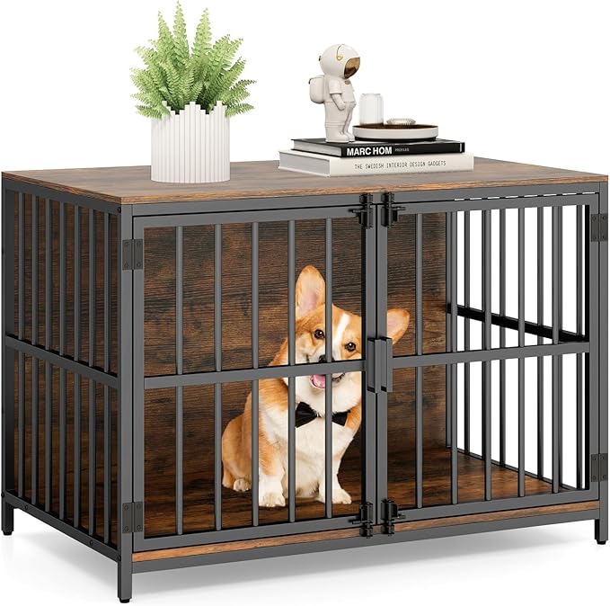 - Dual-purpose Utility: The large decorative dog kennel with dimensions of 40" x 24" x 27.5" (L x W x H) offers a comfortable shelter for small and medium sized dogs. In addition, it functions as a side table with wide tabletop, which is ideal for placing decorative objects or pet supplies.