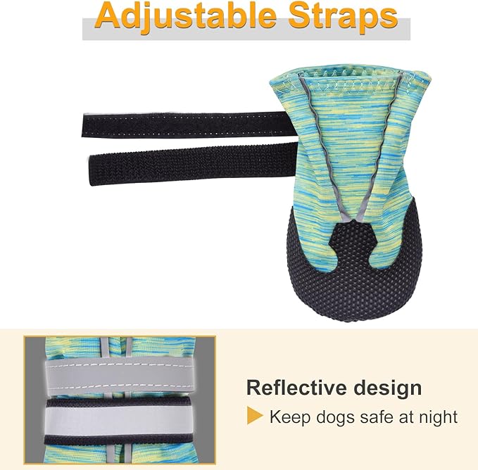 - Easy to Wear & Stay On:These dog booties come with two Reflective Straps. Ensuring that the dog booties will not fall off during walks.The reflective straps provides night time safety