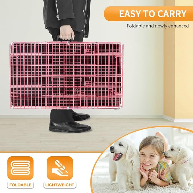 - ❤【DESIGNED TO SAFE AND COMFORTABLE】: The pet cage have two large doors, one on the front and one on the side, are easy to open, close. Heavy duty securely lock with dual latches, providing a safe and secure environment for your pet. The dog cage designed to keep animals safe and comfortable. Pet kennel wire dog crate animal cage.