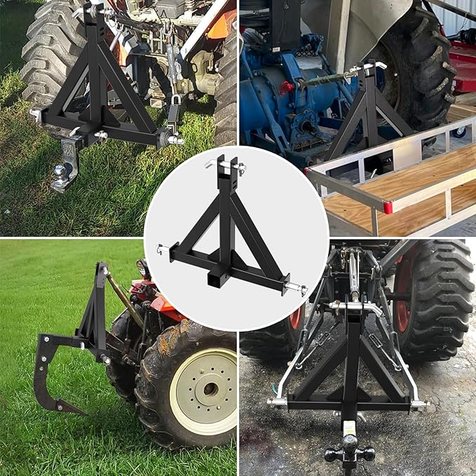 - 【Compatibility】 - This 3 point 2" receiver trailer hitch is designed for moving trailers and other implements that use a standard 2" receiver hitch (actual:2.12" x 2.12"). This hitch is compatible with small, sub-compact, and compact tractors, including models like Kubota BX, LM25H, WLM, NorTrac, Kioti, Yanmar, Cat and John Deere. It's widely used in heavy-duty industrial and construction applications.