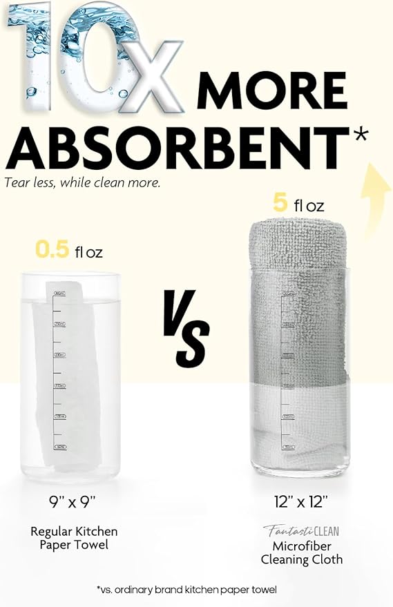 - [Exceptional Absorption] Handle any spill, wet or dry. The cloths can absorb up to 5 times their weight in water, capturing more dirt and drying quicker than conventional towels, while staying odorless
