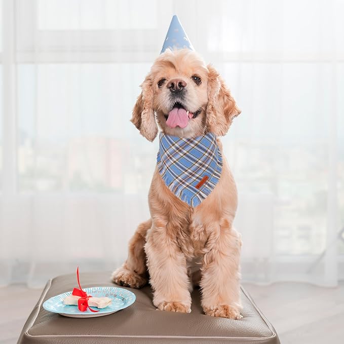 - Package: 1 * bold blue checkered dog bandana, 1 * light blue plaid dog bandana, A fantastic gift for owners of boy dogs—dress up your furry friend in stylish blue attire, or share the cool style with other dog lovers!