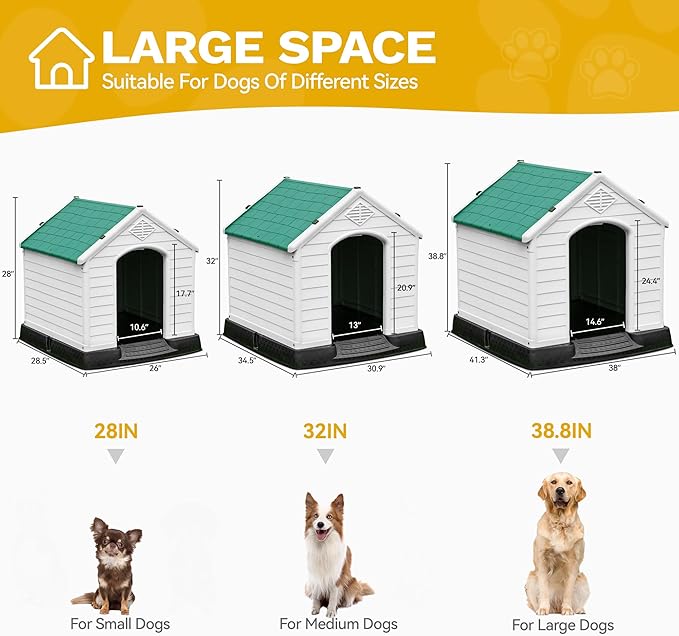 - Compact & Medium Sized Dog House: This plastic pet shelter offers generous dimensions of 41''L*38''W*39''H, with a door measuring 14.6''*24.4'', providing ample space for small to medium-sized dogs like Pomeranians, French Bulldogs, and Teddy breeds