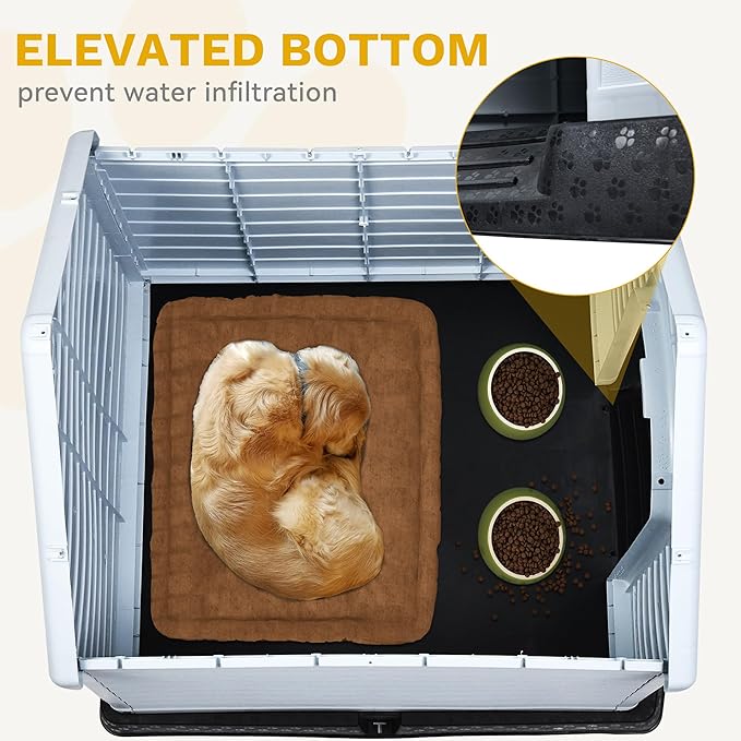 DWVO Plastic Dog House, Weatherproof Outdoor/Indoor Doghouse, Puppy Kennel with Air Vents and Elevated Floor