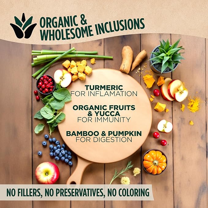 - Natural and Organic Superfoods for Complete Wellness: Enriched with ethically sourced green-lipped mussels for joint support, turmeric root for inflammation relief, and organic fruits & vegetables like pumpkin, blueberries, and apples to boost immune health.