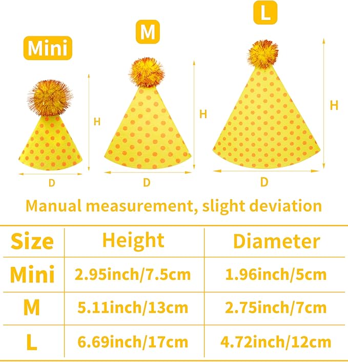 - Size: There are 3 sizes(S/M/L) to choose. LARGE: The height is about 17cm/6.69inches, and the diameter is about 12cm/4.72inches. They can fit for large dogs, alpaca, big stuffed animals and adults. Every hat has an elastic band and adjustable buckle to fit the pets' head better. It is easy to put on and put off, save your time on dog grooming