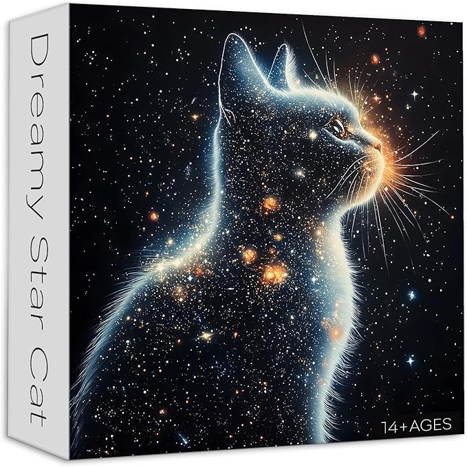 Cat Jigsaw Puzzles 1000 Pieces for Adults, Larkipuzz Starry Night Sky Puzzles, Unique Impossible Nebula Space Puzzle for Home Decor