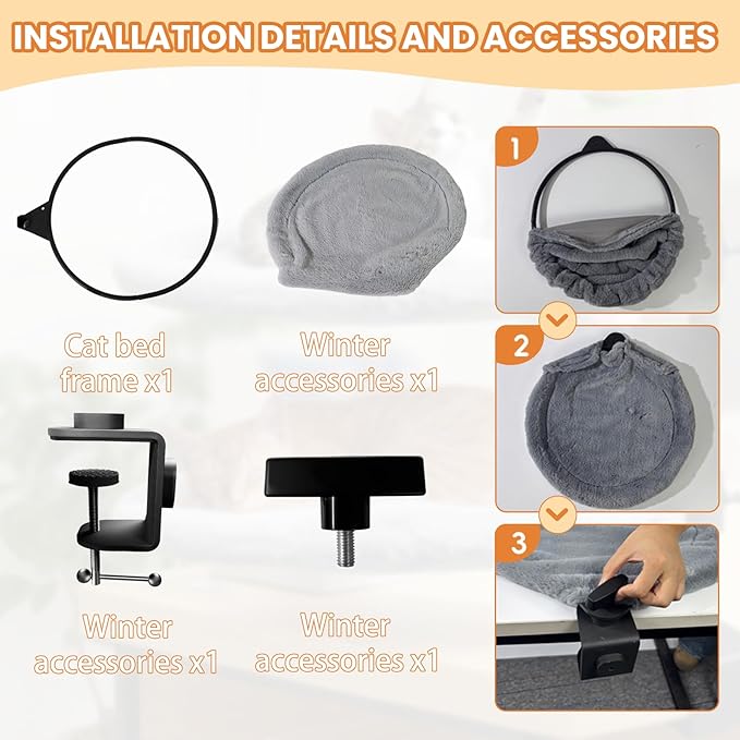 - After-Sales Support : This Indoor Desk Mounted Cat Bed Comes With All The Necessary Hardware And Clear Instructions, For Easy Assembly. If You Encounter Any Issues, Simply Reach Out To Us.