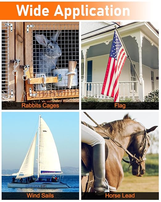 - Secure Spring Closure - The robust spring mechanism ensures a strong, secure closure, preventing accidental opening during use. Perfect for heavy-duty tasks like gate latches, animal leashes, or hanging equipment