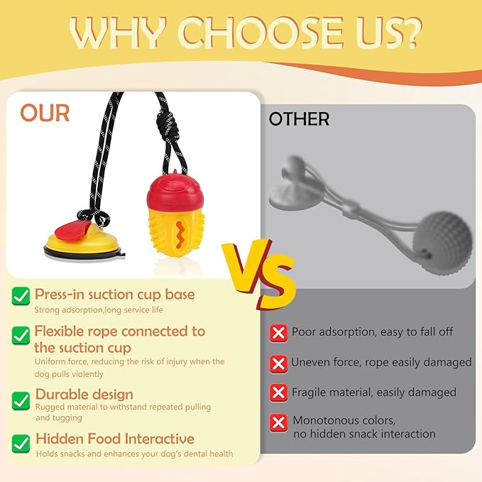 - Holistic Fun & Nurturing:Beyond physical needs, this suction tug toy prioritizes mental well-being. It relieves boredom and reduces stress during busy days, keeping dogs engaged. More than a toy, it fosters bonding—letting pets feel warmth and companionship through interactive play