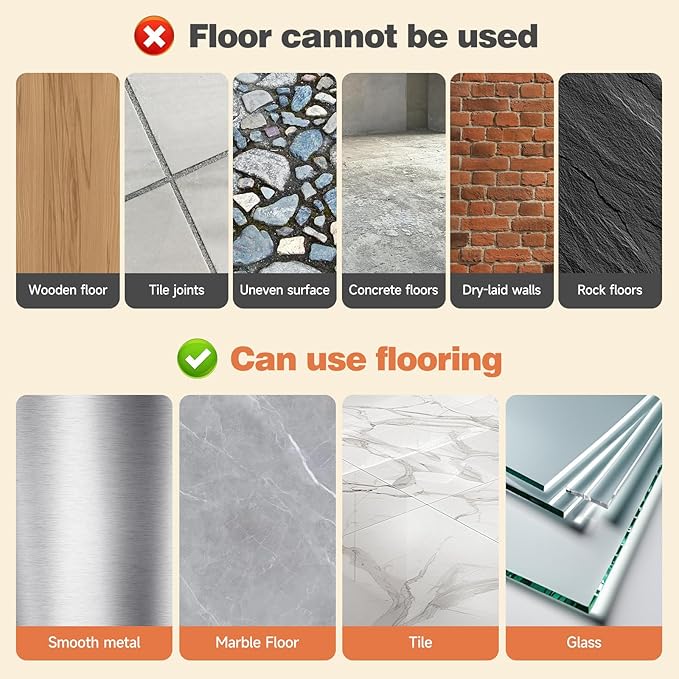 - Note: Do not use on wooden floors!!!Suction cups only work on smooth, non-porous surfaces (such as tiles, glass, polished marble, Smooth metal surface,painted finishes, etc.) and are not suitable for rough or textured surfaces. How to use: Press the suction cup firmly to expel air from inside the rubber base before locking the clip. For a stronger seal, apply a few drops of water around the rim of the suction cup.