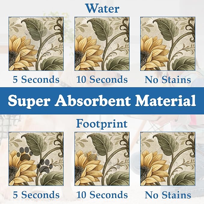 Vintage Sunflower Pet Feeding Mat for Floors–Absorbent Quick Dry Dog Cat Bowl Mat for Food and Water, Non Slip Waterproof Base, Mess-Free Feeding Accessories 12"x20"