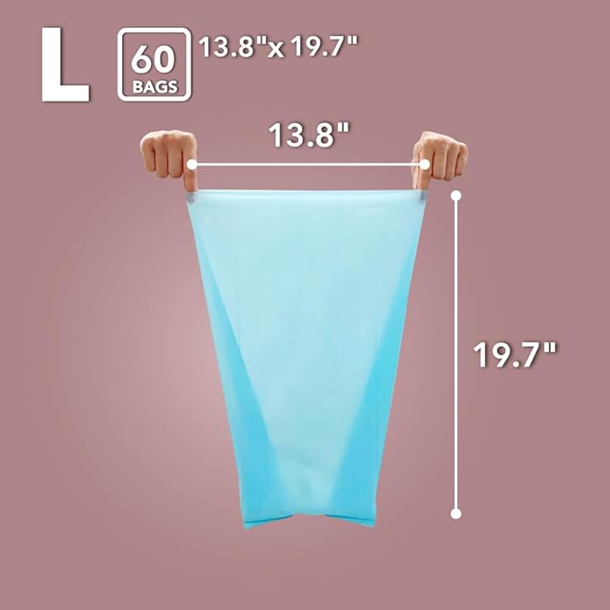 Best Odor-Sealing Cat Poop Bags, BOS for Pet Waste & Kitty Litter - Disposal Bags - Scent & Smell Free (60 bags) [Size: L, Color: Light blue] NOT a litter box liner (Pack of 2)