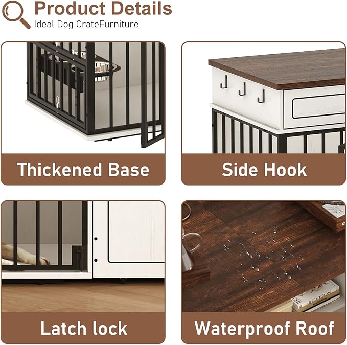 - 【Multifunctional Furniture Dog Crate】This furniture-style dog crate combines practicality and aesthetics, it is not just a dog cage,it also serves as a multifunctional piece of furniture, it can be used as dog crate TV stand. Its rustic color and appearance seamlessly blend into the overall style of your living room or bedroom.The huge size ensures dogs have a comfortable and spacious living area, while also maximizing the use of the house's space.