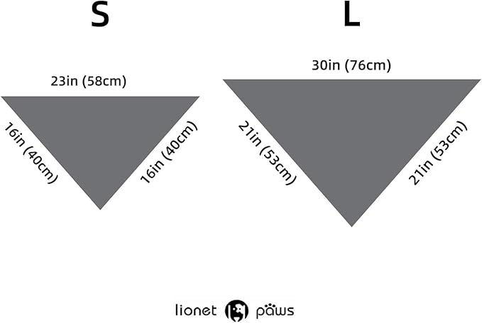 - Bandana Size]: S=23'' x 16'' x 16''(58cm x 40cm x 40cm) Size S is suitable for dog whose neck is less than 16''. L=30'' x 21'' x 21''(76cm x 53cm x 53cm) Size L is suitable for dog whose neck is less than 23''. Please measure the neck girth of your pets before purchasing the item.