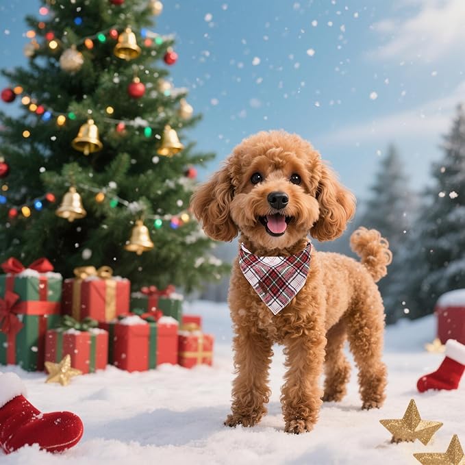 Lionet Paws Christmas Dog Bandana Washable Cotton Handkerchief Scarf Triangle Red Green Plaid Grey Dog Bandanas for Medium Large Dogs Girl Boy
