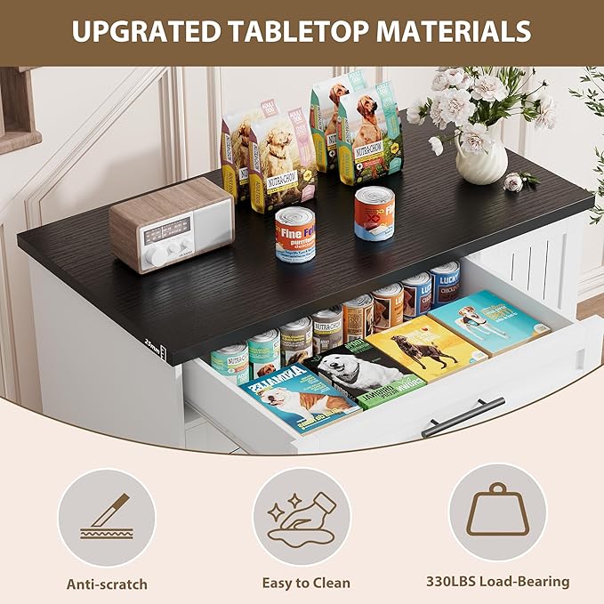 - Enhanced Thick Top for Multi-Use:Crafted with a 25mm reinforced tabletop, this dog crate furniture doubles as a TV stand, sideboard, or decorative console table, holding up to 330 lbs without wobbling. Perfect for integrating pet care with home living