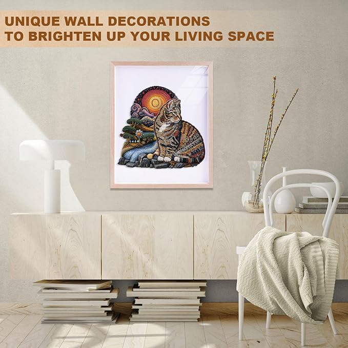 - 【Cat Wooden Puzzle】With soft paw pads, chubby bellies, and the cute look of tilting their heads to nuzzle you—cat puzzle pieces heartwarming moments into your daily life! Every piece hides the lovely details of feline friends. Once completed, this cat wooden puzzle becomes your exclusive "cat - admiring corner". It's perfect for relieving stress by yourself or gifting to a cat lover!