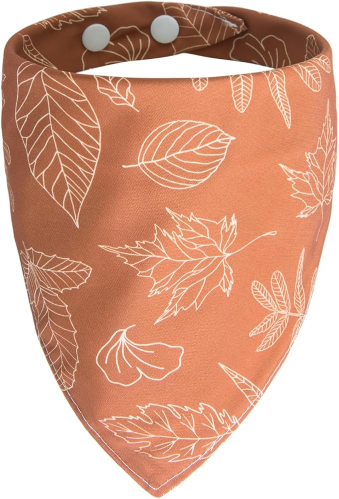 Fall Bandanas for Dogs Autumn Leaves Sktech Printed Style, Thanksgiving Holiday Triangle Pet Scarf with Snap Button for Girls, Extra Large Breed, 75lbs+