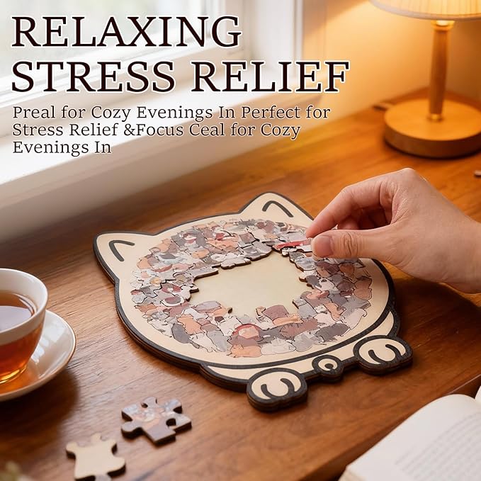 - This 135-piece morandi-colored cat shaped wooden jigsaw puzzle features soft, soothing pastel hues and a charming feline silhouette for a uniquely artistic and calming puzzle experience