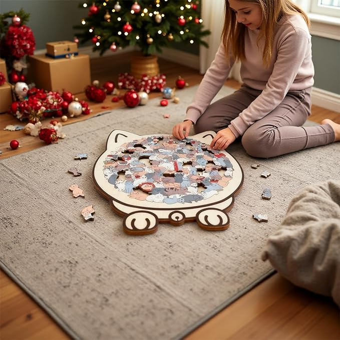 - [Discover a Purr-fectly Adorable Puzzle Experience]Immerse yourself in this 135-piece wooden jigsaw, where every piece is a delight! Uniquely shaped with charming cat silhouettes, playful paws, and cute poses, making the process of finding and fitting each piece a satisfying and joyful adventure.