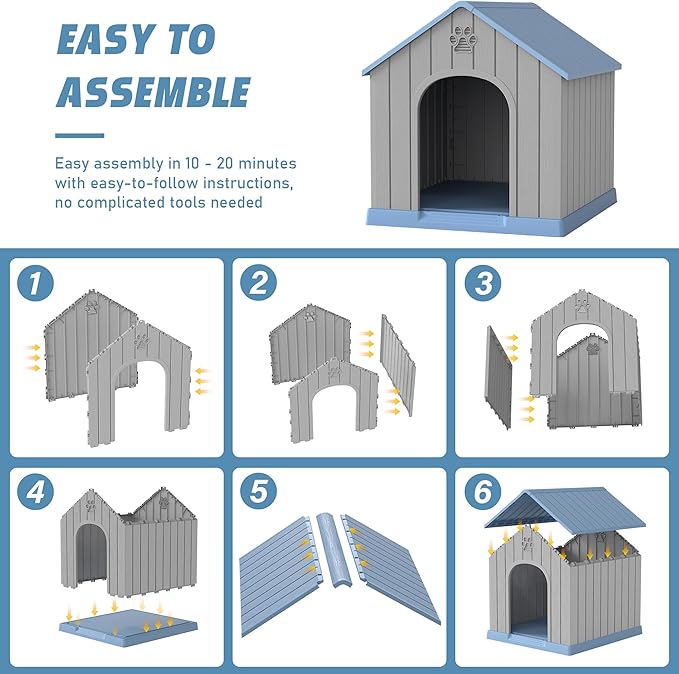 - 🐾【Easy Setup & Hassle-Free Cleaning】: Our dog house is designed for quick and easy assembly, so you can have it ready for your pup in about 20 minutes. The smooth surface makes cleaning a breeze—just wipe it down with a damp cloth to keep it looking fresh and new.