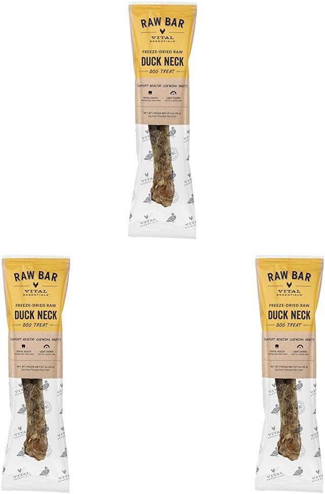 Vital Essentials Freeze-Dried Raw Duck Neck Dog Treat & Natural Chew, 3-Pack | Single Ingredient Dog Treat for Light Chewers | Made in USA