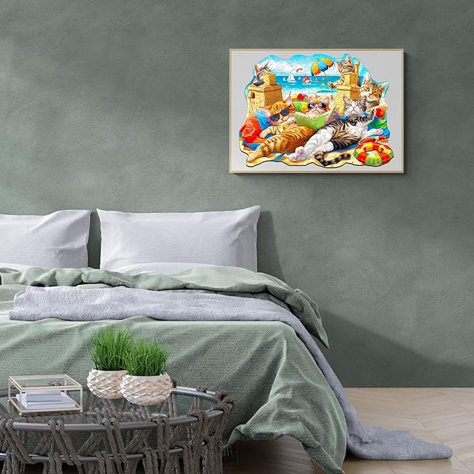KAAYEE Wooden Puzzles for Adults, Beach Cat 90 Piece Unique Animal Shape Puzzle, Cat Wood Puzzle for Adults, Creative Gifts for Friends/Family, Home Decor(8.5 * 6.2in)